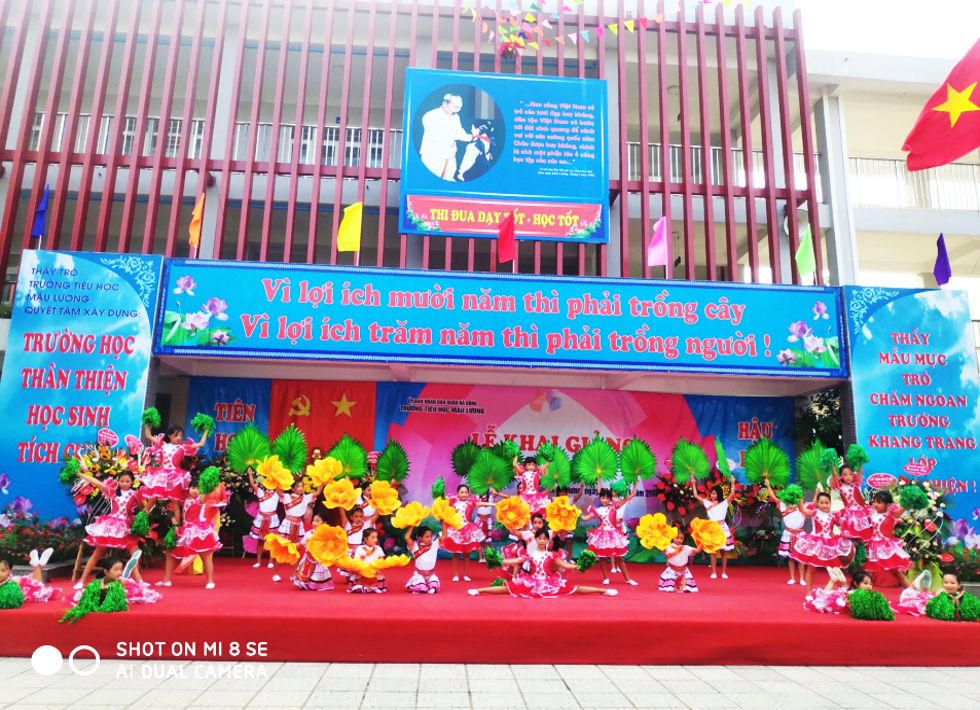 Một số hình ảnh về Lễ khai giảng trực tuyến của trường Tiểu học Mậu Lương.